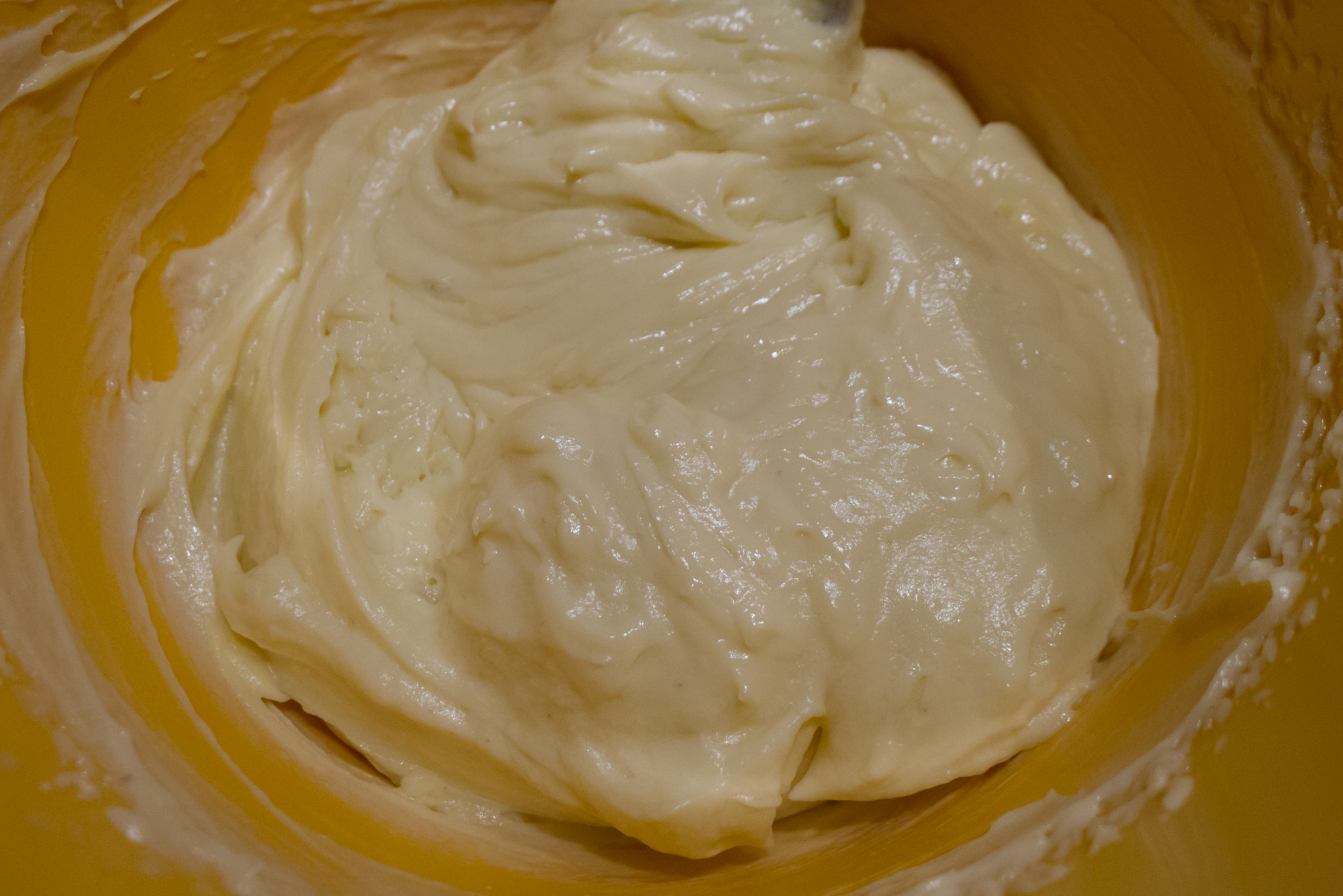 Creme: Für die Fertigstellung der Buttercreme sollten die gekochte Creme und die Butter etwa die gleiche Temperatur besitzen, ansonsten besteht die Gefahr, dass sie ausflockt: auch wenn sie dann geschmacklich zwar meist noch verwendbar ist, sieht sie ausgeflockt nicht mehr appetitlich aus. Die weiche Butter in eine Schüssel geben und mit dem Handmixer oder der Küchenmaschine so lange schlagen bis sie zu einer hellen luftigen Masse wird. Löffelweise die gekochte Creme hinzugeben und dabei weiterschlagen. Im besten Fall ergibt es dabei eine lockere-luftige Masse.