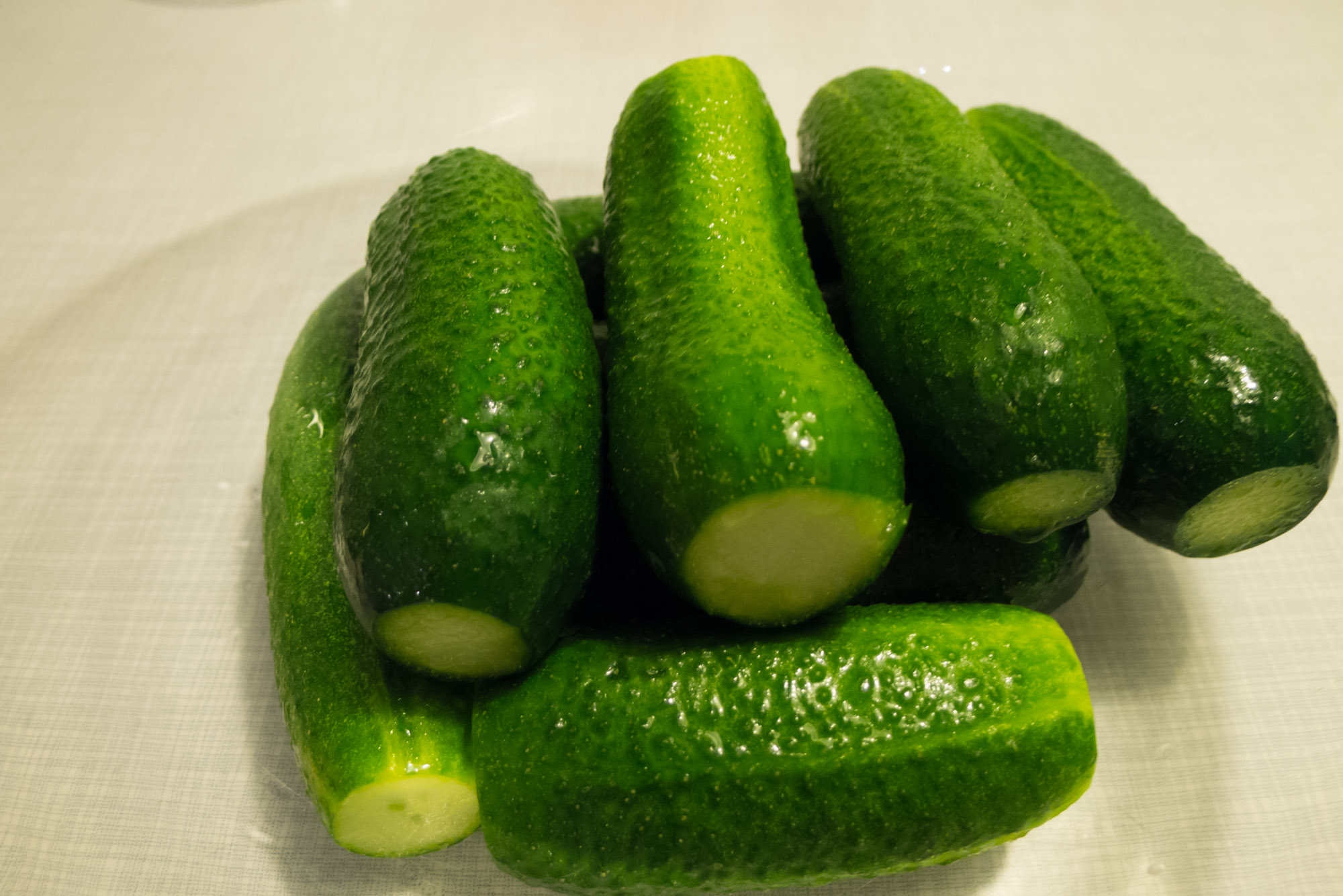 Ich habe mich zwar an die ganzjährig verfügbare Salatgurke gewöhnt, freue mich aber sehr, wenn es diese schönen kleinen hellen Freilandgurken gibt. Ich esse sie gerne in Salaten oder einfach halbiert und mit Salz eingerieben. Zum Sommer gehören sie für mich aber auch unbedingt frisch nach russischer Art eingelegt.