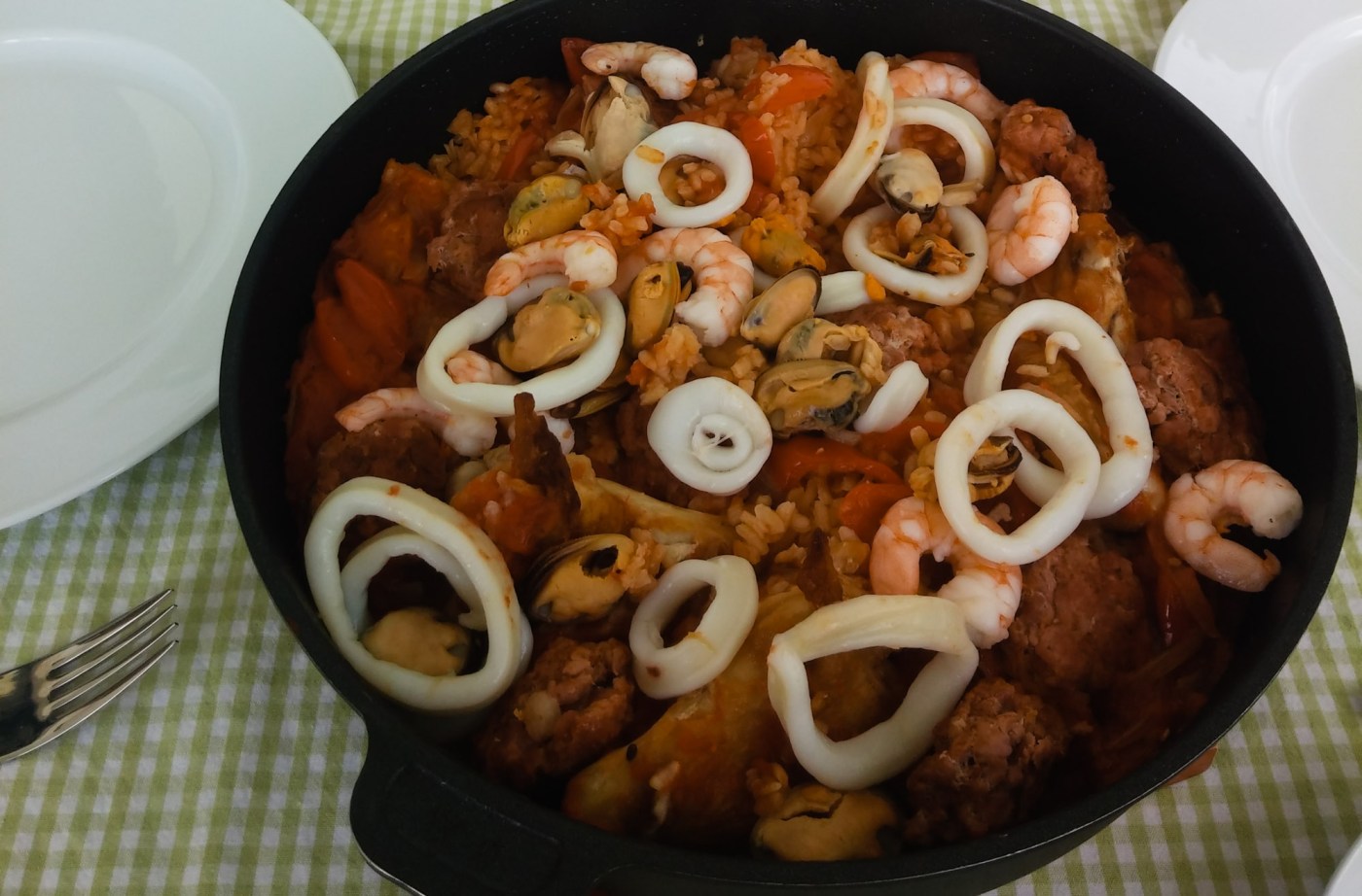 Meeresfrüchte: In Spanien kommen natürlich frische Meeresfrüchte in die Paella. Leider gibt es die bei uns nur in sortenreinen Großpackungen zu kaufen. Da ich aber gerne verschiedene Sorten Meeresfrüchte gleichzeitig in meiner Paella habe, sind die vorgekochte „Frutti die Mare“ aus der Tiefkühltruhe für mich ein guter Kompromiss. Sie müssen dann nur noch erwärmt werden.