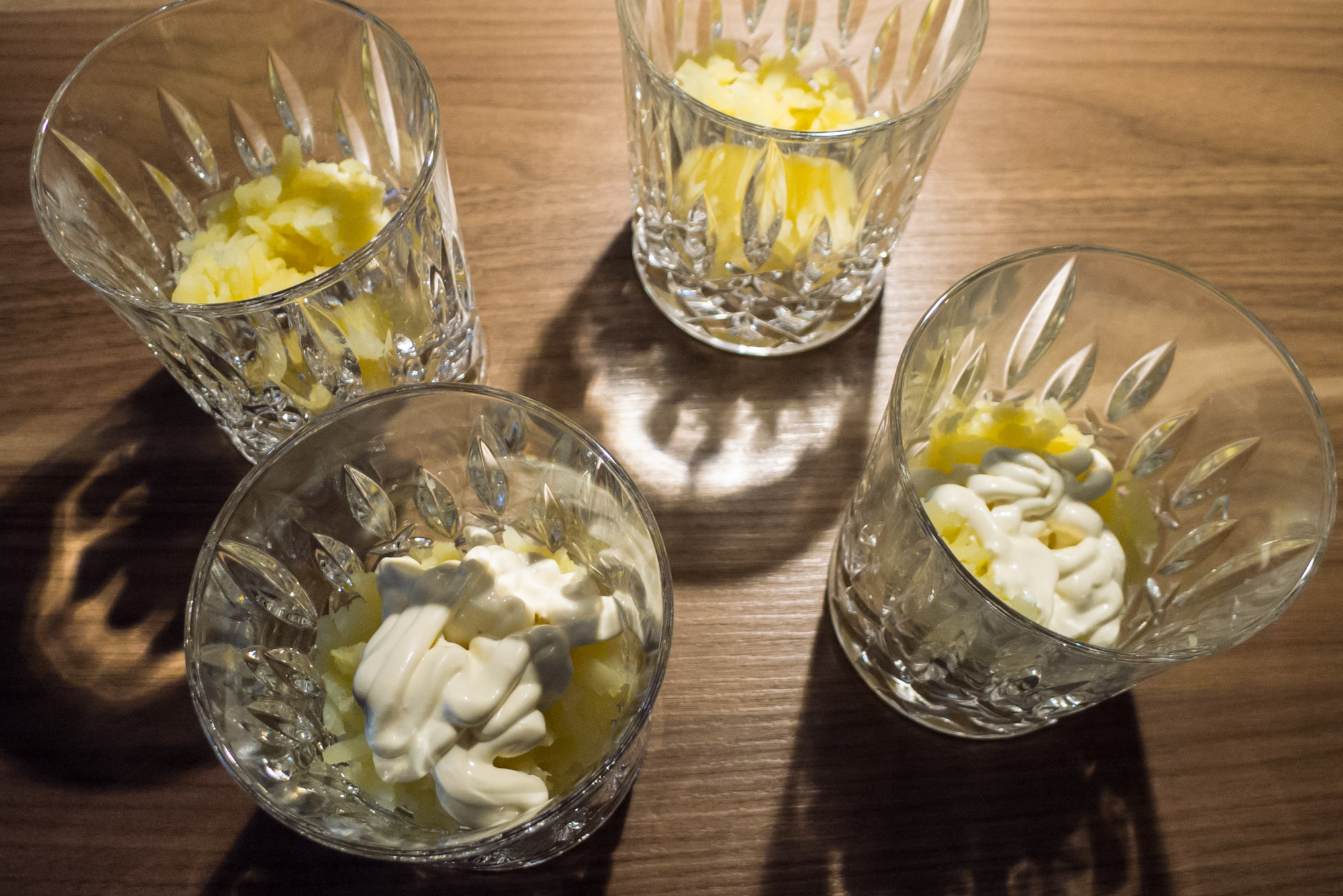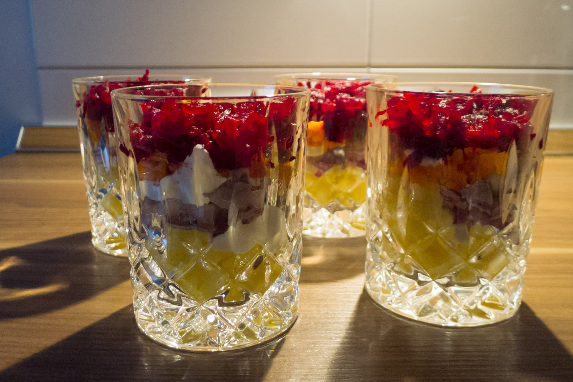 Ich stelle heute eine Variante vor, die sich gut als Vorspeise in kleiner Gesellschaft eignet – als Einzelportion im Glas.
