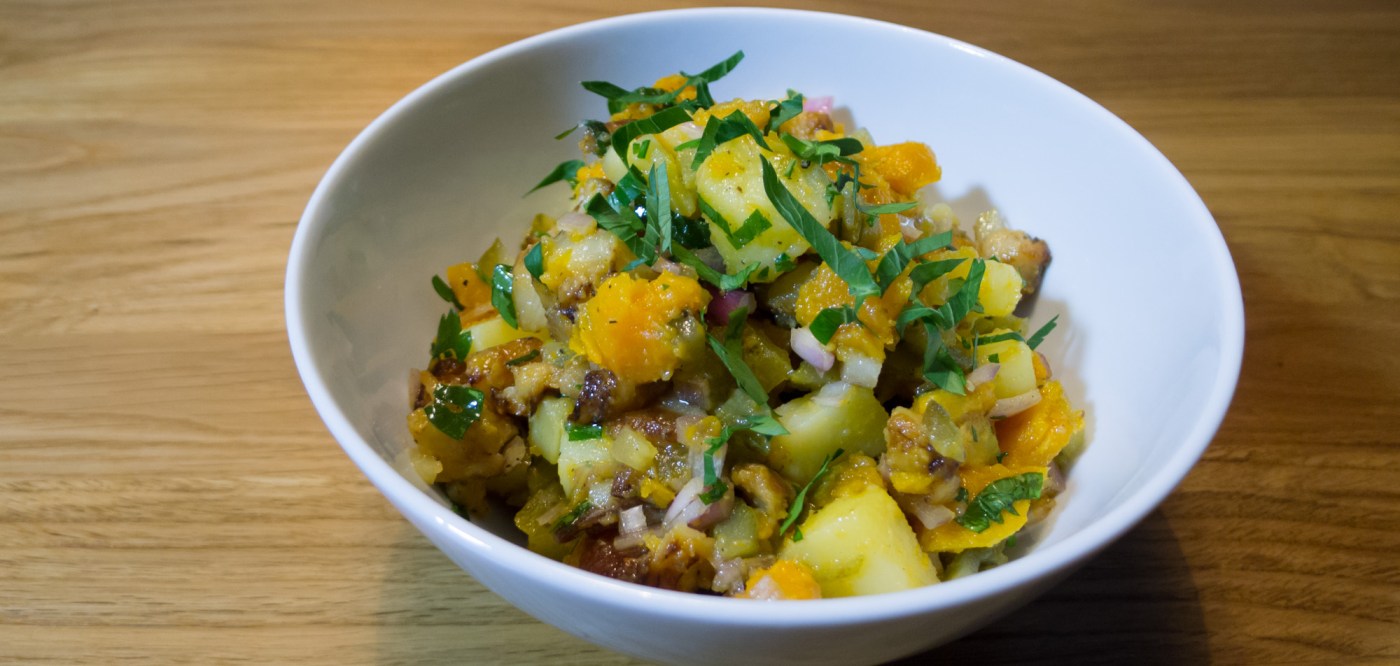 Dieser Kartoffelsalat ist meine Neuerfindung, ein gelungenes Experiment dieses Wochenendes. Pate Stand ein italienischer Kartoffelsalat von Luisella. Ein kurzer Blick auf meine Zutatenliste zeigt aber, dass dieser Salat nicht mehr wirklich italienisch ist, auch wenn er ihm in Grundzügen ähnelt.