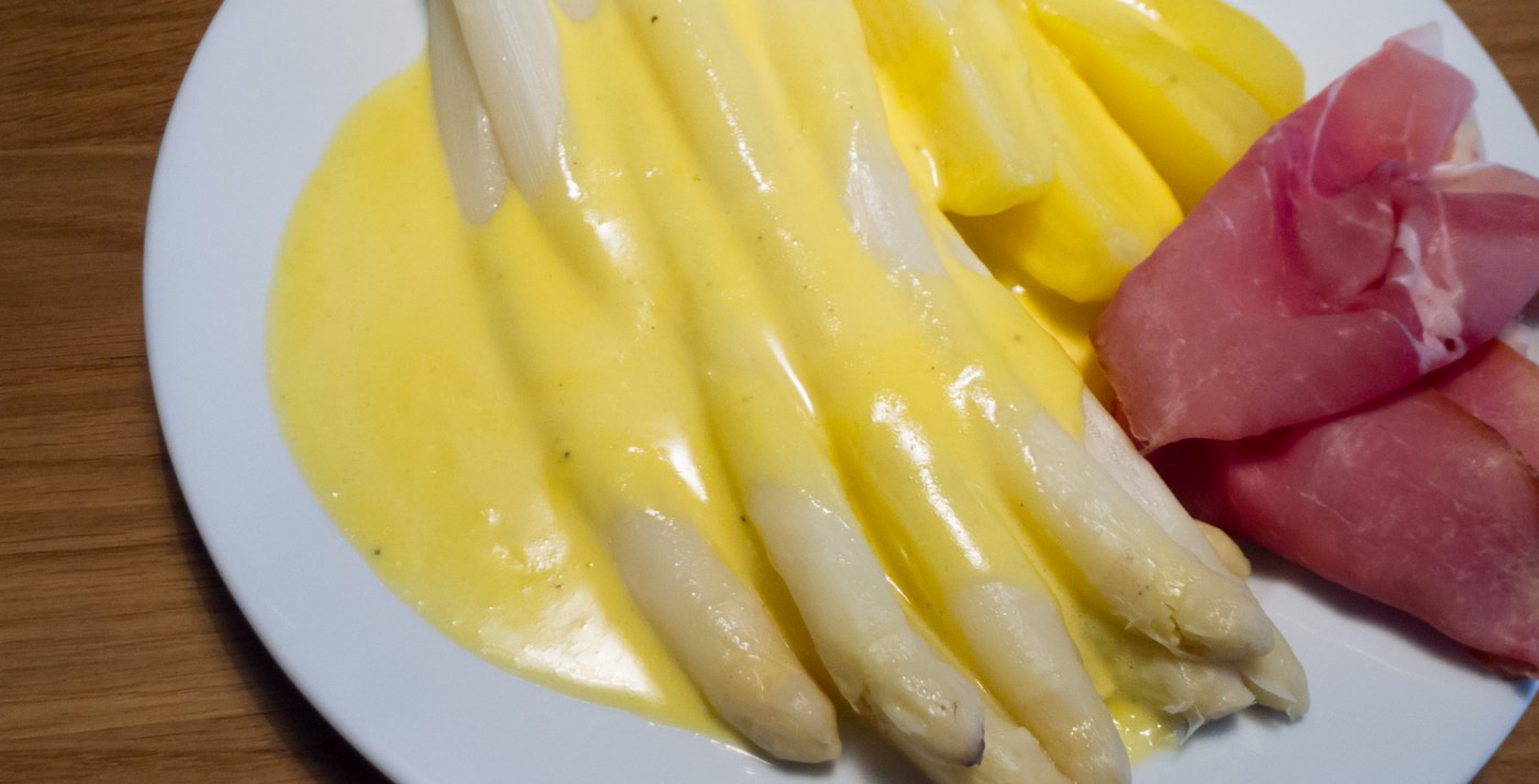 Es ist wieder Spargelsaison. Und ich liebe weißen Spargel klassisch mit Kartoffeln, Schinken und Sauce hollandaise. Die Sauce selbst zu kochen hatte ich mich bisher nie getraut: auch ich kenne jemanden persönlich, dessen Nichte einen Cousin zweiten Grades hat, der einen Studienkollegen hat, dessen Frau schon mal probiert hat, sie selbst zu machen und…. ist eine lange Geschichte. Gleichzeitig gibt es sie fertig zu kaufen, von namhaften Herstellern im praktischen Tetrapack und zwar nicht nur in Supermärkten sondern auch direkt an den Spargelständen auf dem Markt: man muss sie nur noch erwärmen und nichts kann schiefgehen.