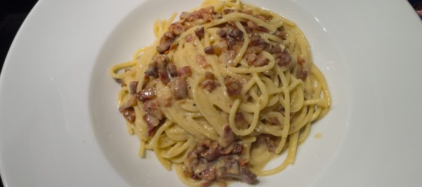 Bisher war Spaghetti carbonara für mich ein Gericht, das ich alle Jahre wieder nach einem wechselnden Rezept zubereitete und nicht so bald wieder brauchte. Und kürzlich habe ich erstmals Guancale im Feinkostladen um die Ecke entdeckt: das ist der gewürzte luftgetrocknete Schweinebackenspeck aus dem Latium, der klassischerweise für Spaghetti alla carbonara verwendet wird. Also musste... Continue Reading →