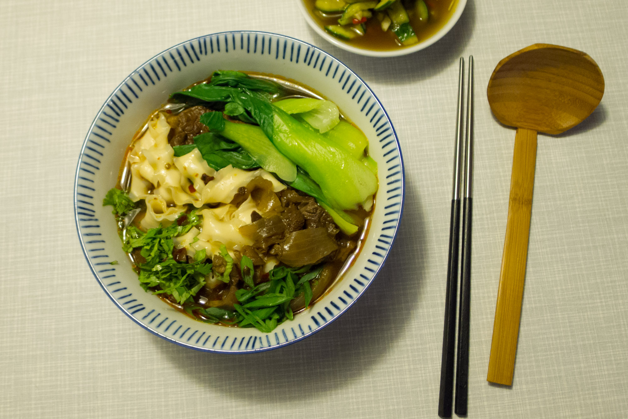 1,5 Jahre nach meinem ersten Beitrag zu Niu rou mian ist es Zeit für ein Update oder besser gesagt: eine Revision. Alles, was ich damals geschrieben habe, hat weiterhin eine Daseinsberechtigung. Zwei Gründe haben mich jedoch zu Änderungen gedrängt, die zu dem heutigen Rezept geführt haben: Zum einen die Tatsache, dass meine Dauertestesserin sich regelmäßig beklagte, meine Niu rou mian hätten zu viel europäischen „Gulasch-Geschmack“, der in Taiwan nicht im Gericht enthalten ist. Zum anderen musste ich mich für eine andere Chili-Bohnen-Sauce/Paste entscheiden – die von mir im ersten Beitrag gelobte Sorte ist seither aus den Regalen verschwunden und nicht mehr aufzutreiben.