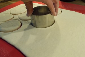Oder den gesamten Teig ca. 5-10 mm dick ausrollen und dann Kreise