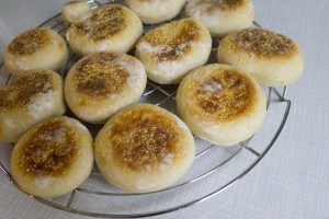 Im Verlauf der Zeit und mit zunehmend bewusster Ernährung waren bei mir die Toasties mehr oder minder in Vergessenheit geraten. Und plötzlich stolperte ich wieder über sie, aber diesmal als English Muffins zum Selbermachen. Ich testete das Rezept von Kara Chin aus ihrem Blog knead.bake.cook. und war begeistert. Mein Dauerversuchskaninchen war auch mehr als angetan. Deswegen kommt hier meine Version ihres Rezeptes. Ich habe unter anderem ihre Volumenangaben in metrische Maße verwandelt.