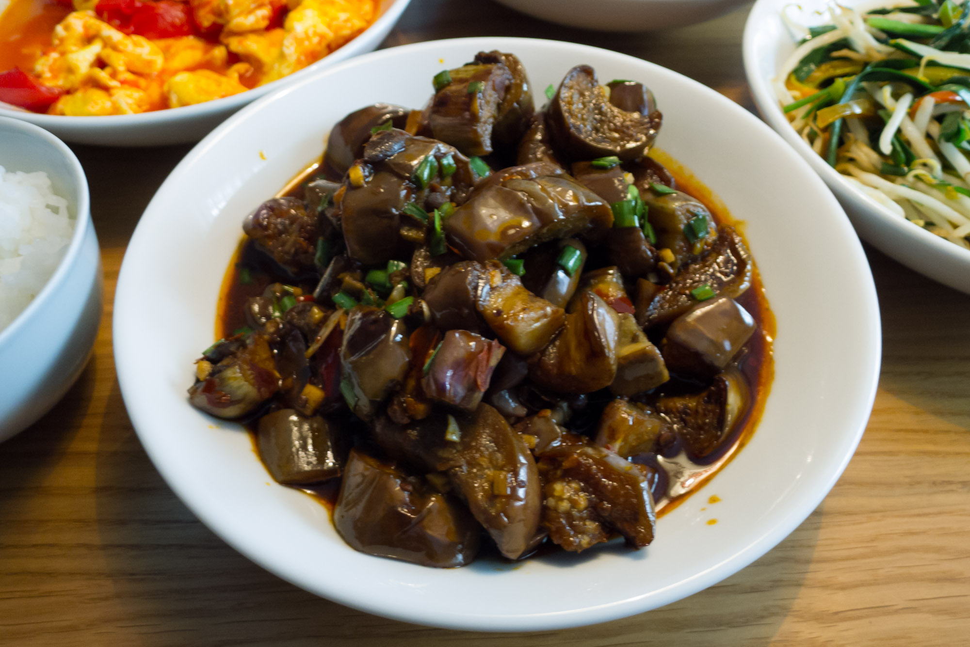 Yu Xiang Qie Zi (魚香茄子) ist mein Lieblings-Auberginengericht der chinesischen Küche. Wörtlich übersetzt heißt das Gericht „Fischduft-Aubergine“. Dies führt bei Nicht-Eingeweihten erstmal zu Verwirrung, denn es ist kein Fisch in dem Gericht enthalten und es riecht auch nicht nach Fisch. Sein Name ist so zu verstehen, dass die benutzten Gewürze und die Zubereitungsart in der Sichuan-Küche sonst für Fisch verwendet werden.