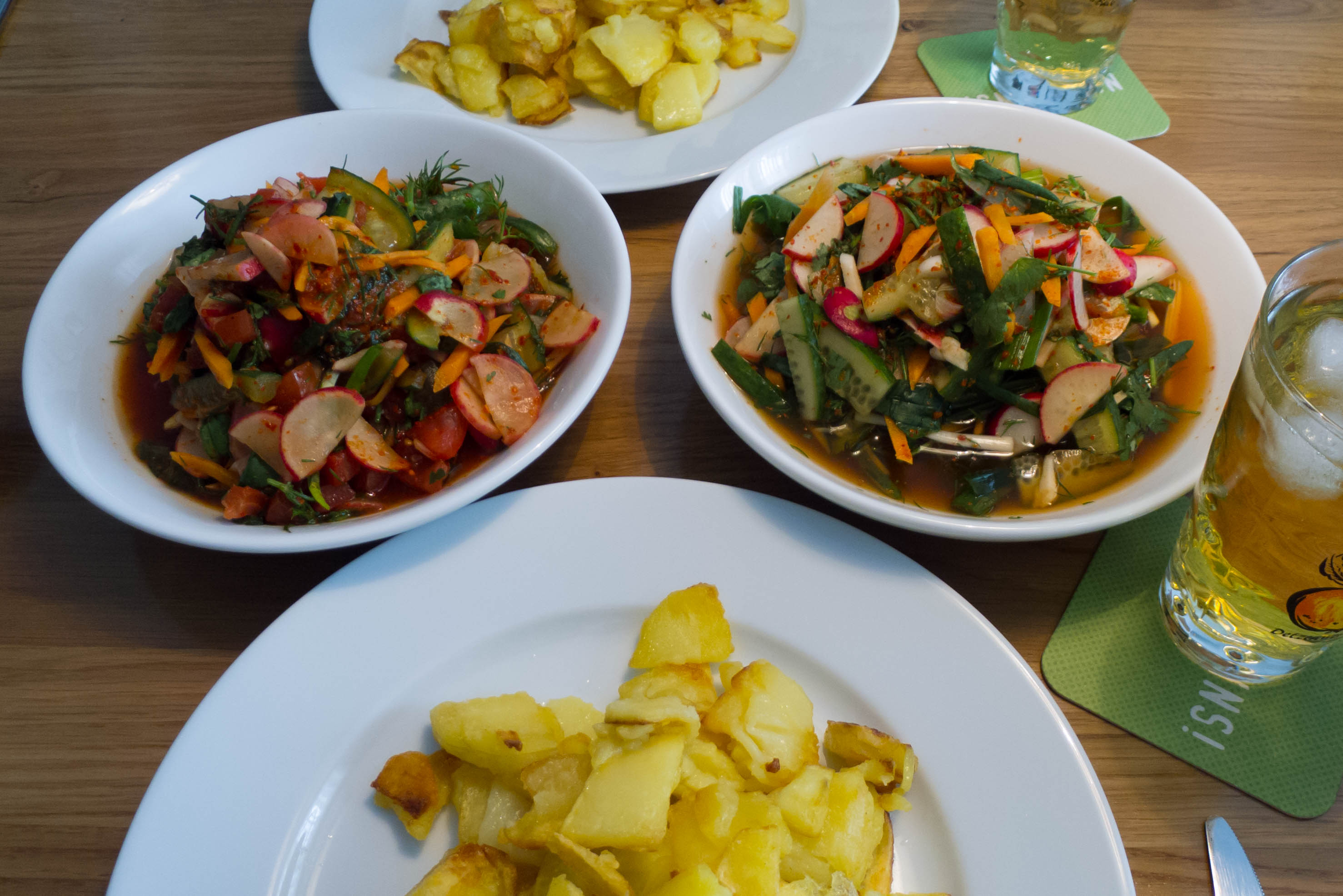 Kürzlich stolperte ich bei Youtube über einen Beitrag, in dem die Zubereitung von весеннее чимчи (russisch für Frühlings-Chimchi) erklärt wurde. Es hat mit dem Kimchi aus Südkorea nicht viel zu tun, wird aber wohl von ethnischen Koreanern in der ehemaligen Sowjetunion gerne im Frühling zubereitet. Bei gezielter Suche danach bin ich auf mehrere Beiträge gestoßen, die sich zum Teil auch etwas unterscheiden. Da der daraufhin erfolgte erste Versuch Lust auf mehr machte, ging es dieses Wochenende wissenschaftlich weiter: wir haben 2 Varianten empirisch verglichen und für uns den Sieger erkoren. Auch die zweite Variante hat ihre Daseinsberechtigung, deswegen beschreibe ich sie mit.