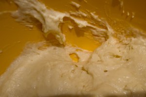 Zur Veranschaulichung der Teigkonsistenz (während des Ausbackens/nach Teil-Entnahme):
