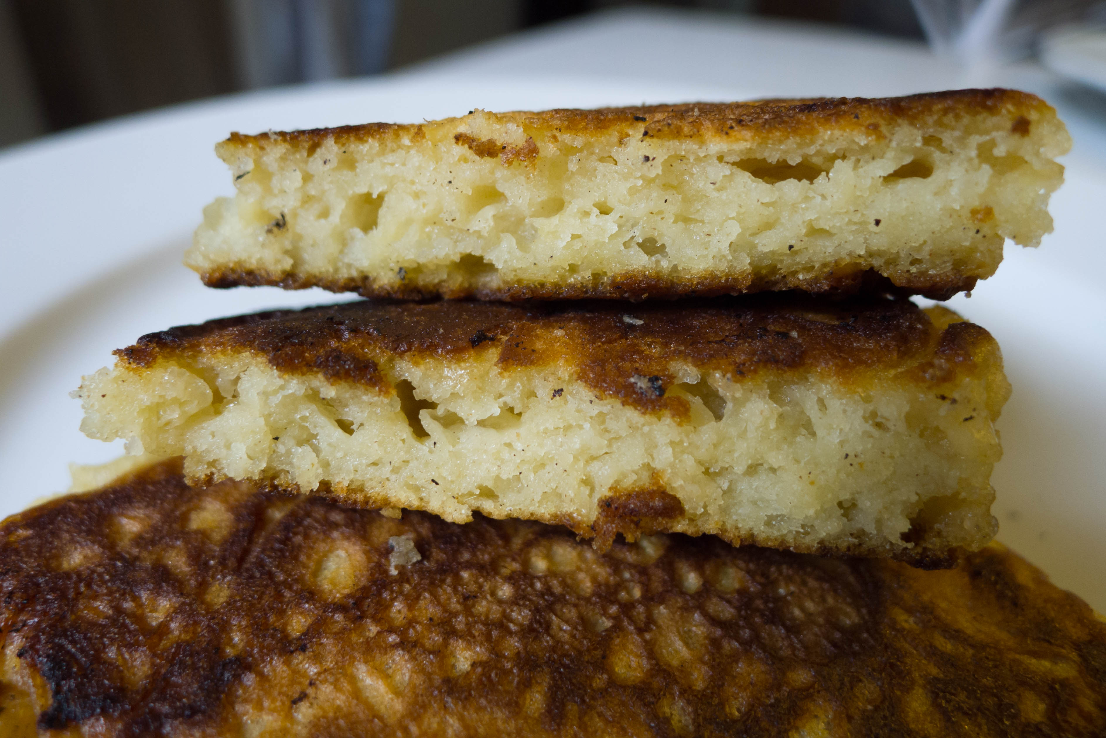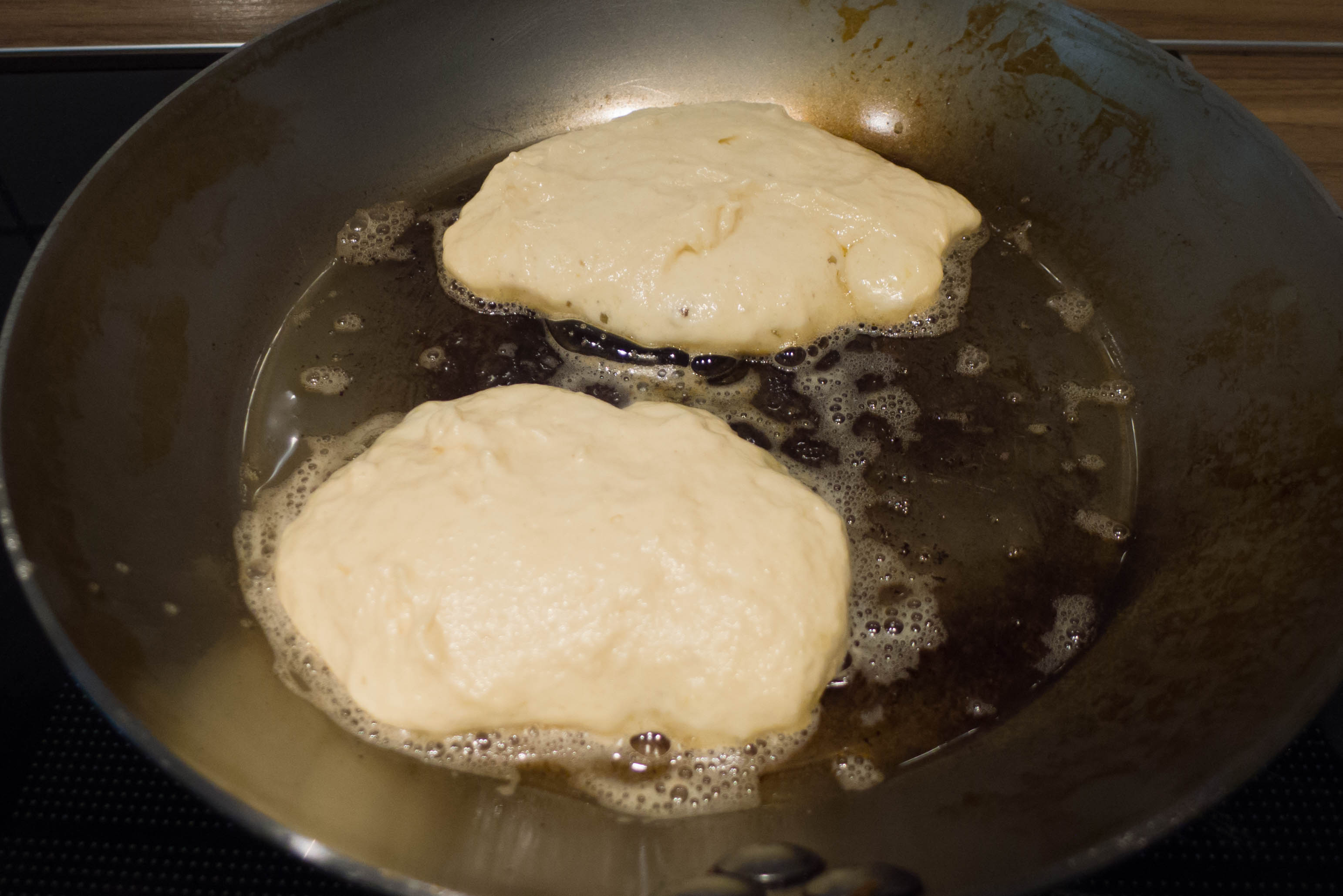 Die Russen haben Oладьи (Oladji): kleine Pfannkuchen, die den amerikanischen nicht unähnlich sind. Ich suchte also im englischen und russischen Sprachraum nach Rezepten. Und das heutige ist ein Mix aus mehreren. Das Ergebnis war eine Überraschung in mehrfacher Hinsicht: