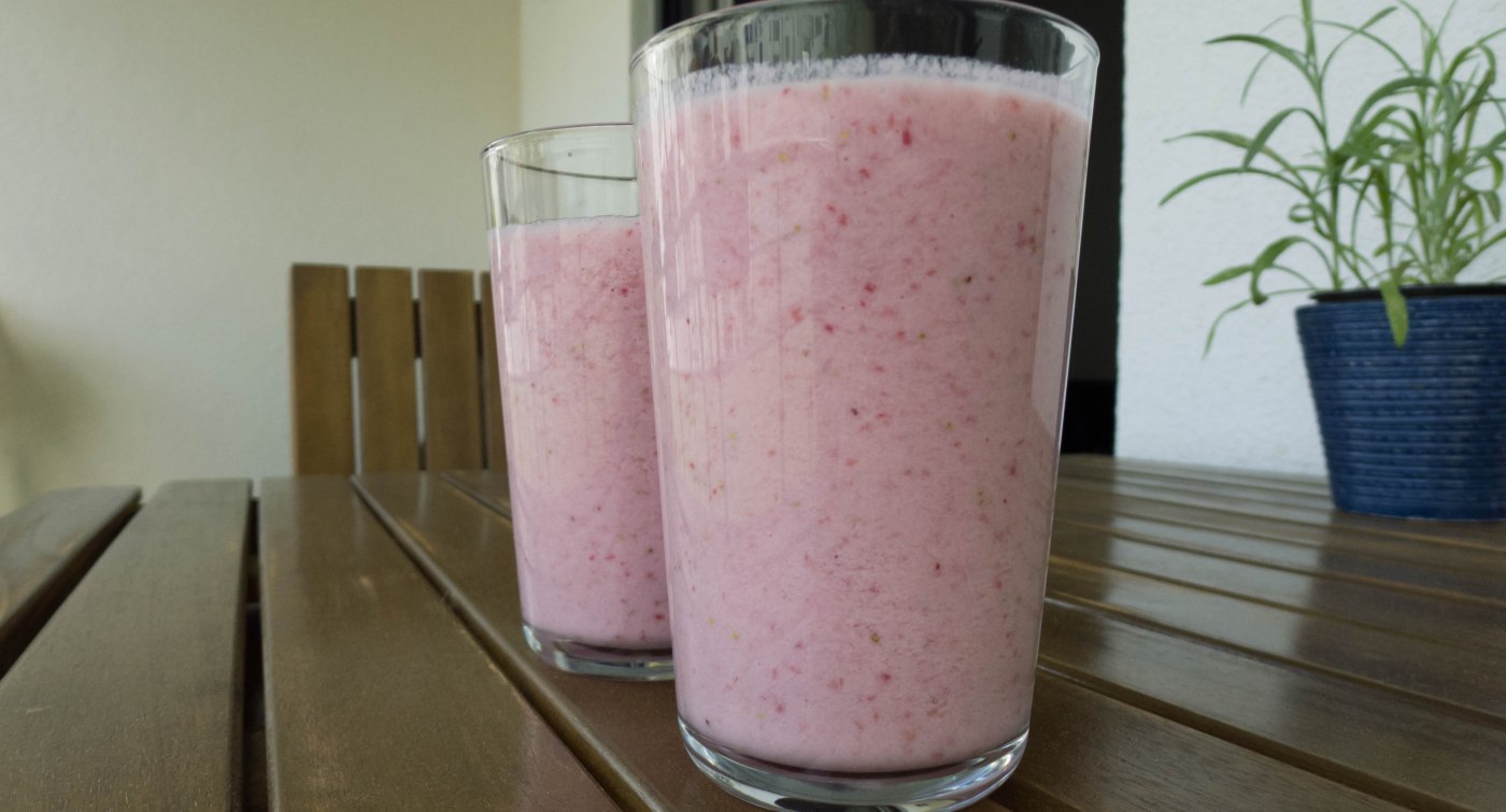 Variante: auch außerhalb der Erdbeersaison kann dieses Getränk zubereitet werden. Dann die Erdbeeren gefroren direkt aus dem Gefrierfach in den Mixer geben und auf zusätzliche Eiswürfel verzichten.