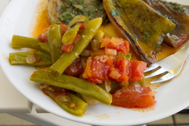 Bei den aktuellen Außentemperaturen stellt sich in der Küche fortwährend die Frage: machen wir wirklich den Herd an, oder kommen wir vielleicht ohne aus? Das Rezept, welches ich heute vorstellen möchte, trägt dazu bei, dass der Herd über mehrere Tage weniger eingeschaltet werden muss. Die Gesamt-Kochzeit beträgt etwa 20 Minuten, dann können 2 Personen von der unten aufgeführten Portion einige Mahlzeiten bestreiten und das zum Teil vollständig kalt. Dieses Rezept stammt aus der türkischen Küche. Es passt gut zu gemischten Meze / Antipasti. Meine eigenmächtige Variation ist lediglich das Hinzufügen von Bohnenkraut. Und ich habe festgestellt, dass es mit am Vorabend gekochten Nudeln (und etwas mehr Olivenöl) ein sehr gutes Mittagessen ergibt, welches sowohl kühlschrankkalt als auch bei Zimmertemperatur genossen werden kann, z. b. am Arbeitsplatz.