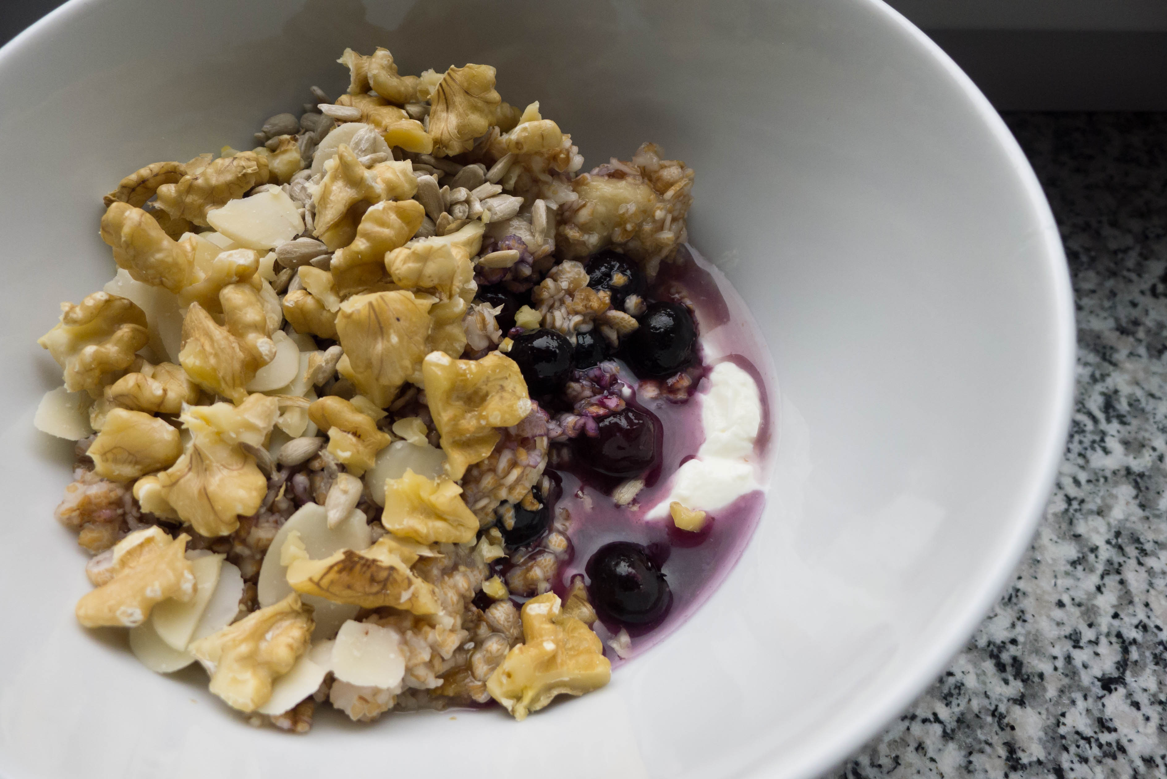 Süßungsmittel: Taucht in der aktuellen Zutatenliste nicht auf, weil ich wegen Banane und Feige keine weitere Süße brauche. Wer saure Beeren oder Obst verwendet, wird sicher nicht umhinkommen, doch etwas Honig oder Ähnliches im Kochwasser aufzulösen.
