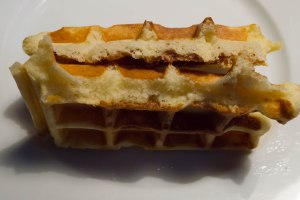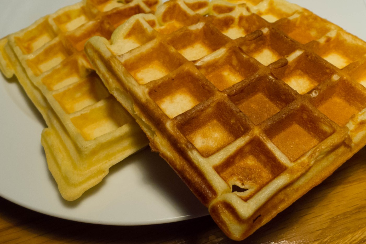 Endlich habe ich ein Rezept für perfekte Frühstückswaffeln! Seit etwa einem Jahrzehnt besitze ich ein Waffeleisen, benutzt wurde es selten. Das Problem war bisher: ich fand partout kein Rezept, das die anschließende Reinigung des Gerätes rechtfertigte. Bis ich kürzlich die Kartoffelwaffeln „erfand“. Da das Waffeleisen schon mal aus dem Schrank herausgesucht war, machte ich mich doch wieder auf die Suche nach einem Rezept für süße Waffeln. Die bisherigen waren mir häufig zu süß, reichhaltig und manchmal gleichzeitig nichtssagend. Als ich gestern in einem Waffel-Backbuch über Brioche-Waffeln gestolpert bin, war meine Neugier geweckt. Ich übernahm davon die Zutaten. Allerdings habe ich die im Rezept beschriebenen vielzähligen Arbeitsschritte mit unbedingter Verwendung eines Handrührgerätes und mehrfachem Wechsel von Rühraufsatz zu Knethaken und zurück und zurück missachtet. Mir kam vor allem auch die Reihenfolge der Zutatenbeigabe, die im Original verlangt war, etwas seltsam vor. Ich unternahm also ein Experiment und bereitete mich darauf vor, mit Ansage zu scheitern. Aber dem war nicht so, wir haben unsere Waffeln für ein Sonntagsfrühstück gefunden. Dafür muss niemand früh aufstehen, kein Mixer benutzt werden, kein Eiteitei. Es muss lediglich am Vorabend jemand 10 Minuten Zeit aufwenden. Et voilà!