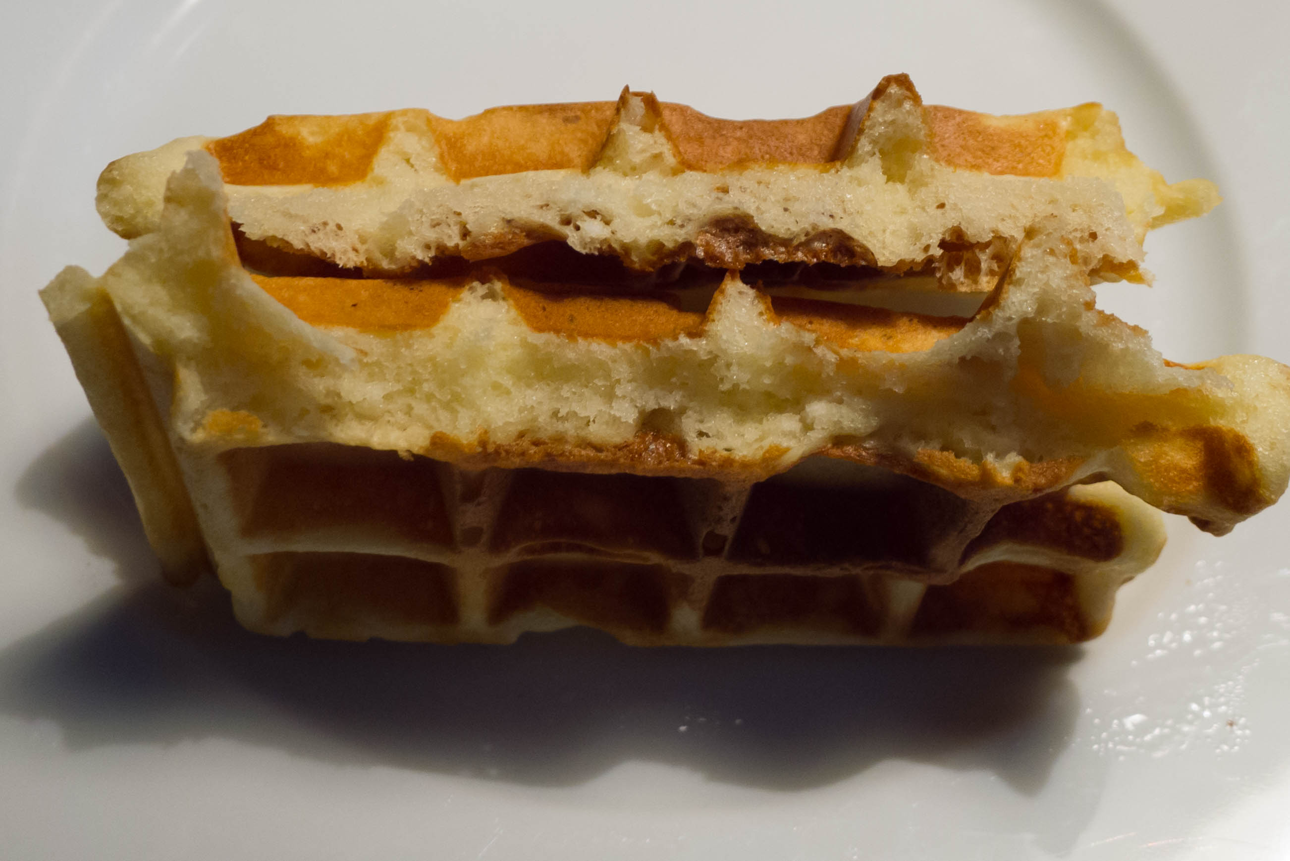 Eine kleine Warnung noch vorweg: diese Waffeln haben nur wenig Zucker drin, sie ähneln wirklich sehr dem französischen Brioche. Ich kann sie mir auch wunderbar als Grundlage eines Schinken-Käse-Sandwiches vorstellen. Wer die typischen pappsüßen Waffeln will, wird mit diesem Rezept eher unglücklich.