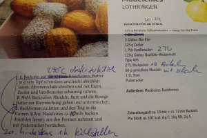 Nach dem Erfolg mit meinen ersten Madeleines wurde mir letzten Sommer ein anderes Madeleines-Rezept in die Hand gedrückt, das in einem Supermarkt-Blättchen erschienen war.