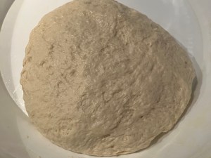 Nun den Teig erneut abdecken und an einem warmen Ort stehen lassen bis er sich verdoppelt, besser verdreifacht hat – dieses kann je nach Raumtemperatur, Teigtemperatur und Kraft der Hefe knapp eine Stunde oder auch gut drei Stunden dauern.